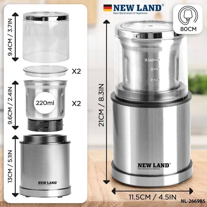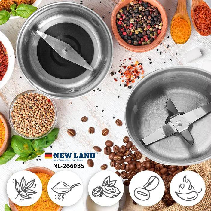 دارای دو کاسه جدا برای ادویه های خشک و ادویه های روغنی با طراحی تیغه های جدا