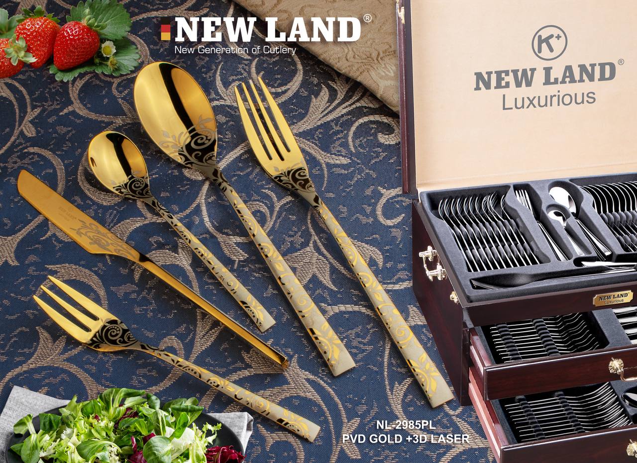 سرویس قاشق و چنگال 135 پارچ 24 نفره صندوق چوبی نیولند مدل 2985PL