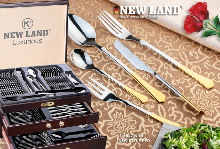 سرویس قاشق و چنگال 135 پارچ 24 نفره صندوق چوبی نیولند مدل 2987NP