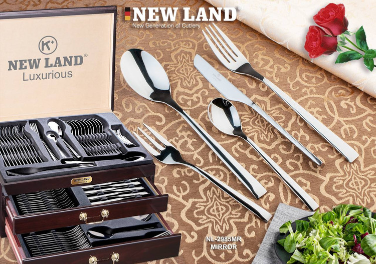 سرویس قاشق و چنگال 135 پارچ 24 نفره صندوق چوبی نیولند مدل 2985MR