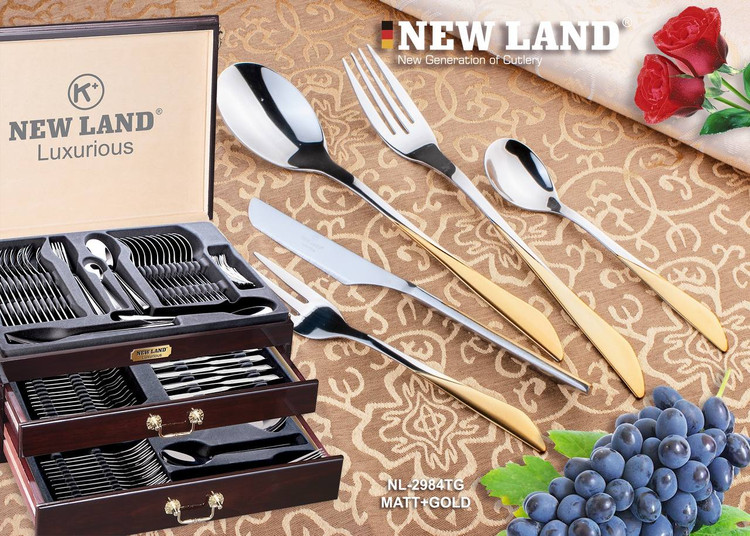 اقلام موجود در سرویس قاشق و چنگال نیولند 135 پارچ 24 نفره صندوق چوبی قاشق غذا خوری 24 عدد چنگال غذا خوری 24 عدد قاشق چای 12 عدد قاشق شربت 12 عدد قاشق مربا 12 عدد قاشق چای 12 عدد کارد میوه 12 عدد چنگال میوه 12 عدد قاشق عسل 2 عدد گیره یخ 1 عدد کارد کره 1 عدد قاشق شکر 3 عدد قاشق بزرگ 1 عدد کفگیر 3 عدد ملاقه بزرگ 2 عدد ملاقه کوچک 1 عدد قاشق آجیل 1 عدد مجموع ———————— 135 عدد