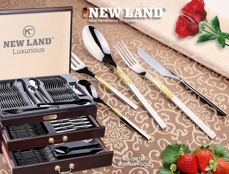 سرویس قاشق و چنگال 135 پارچ 24 نفره صندوق چوبی نیولند مدل 2981MG